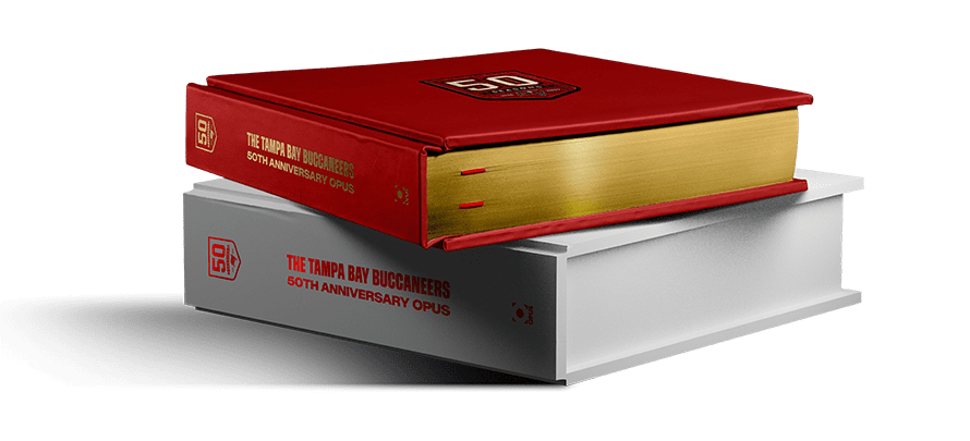 Featuring iconic and never-before-seen imagery from 50 legendary moments, the Opus immortalizes the Buccaneers’ past while pointing to the spirit propelling the organization into its next era.
