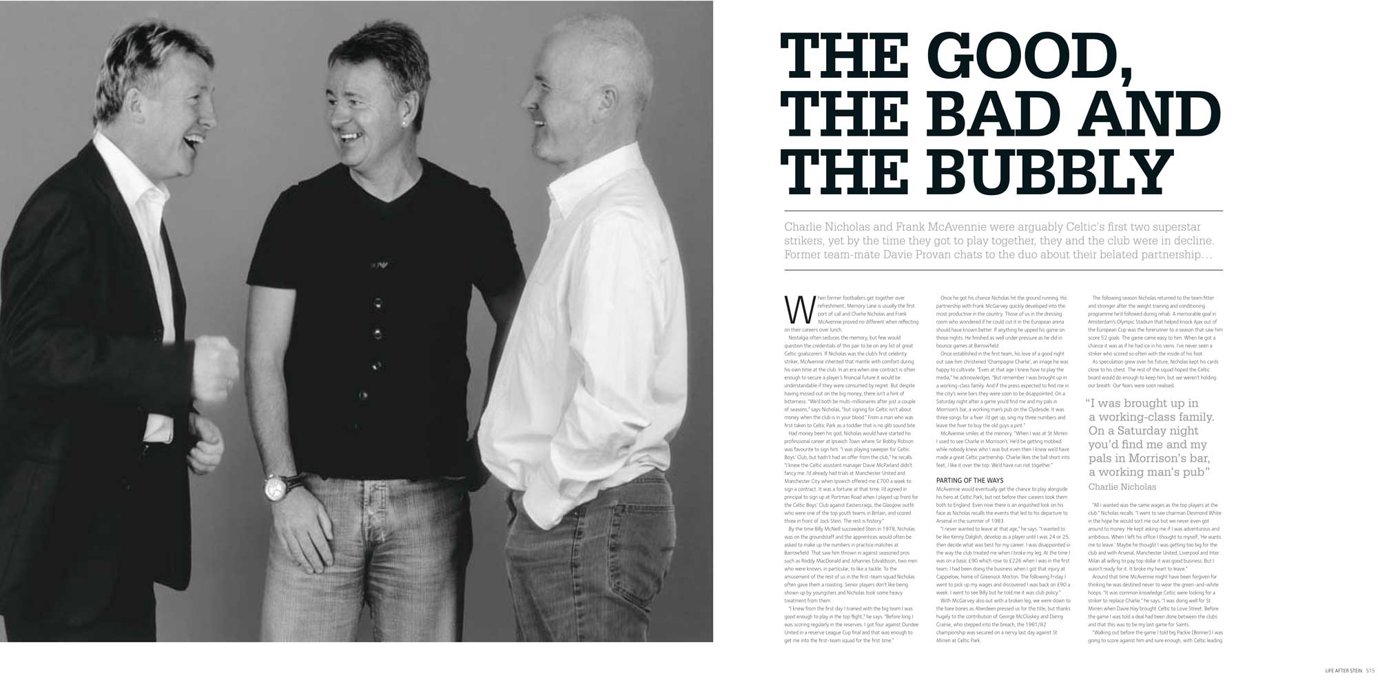 Three epic fold-out gatefolds including a stunning photographic montage featuring all the surviving Lisbon Lions and Leap of Faith – an extraordinary two-metre wide gatefold summing up the drama of Celtic in dance.