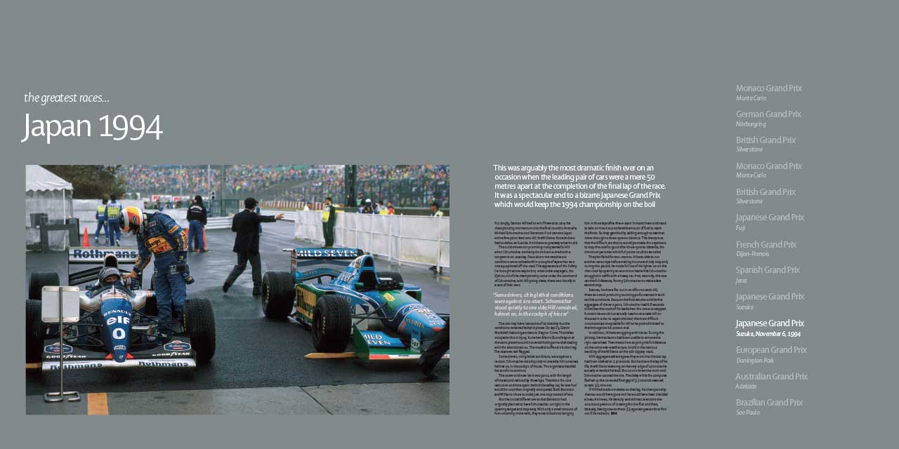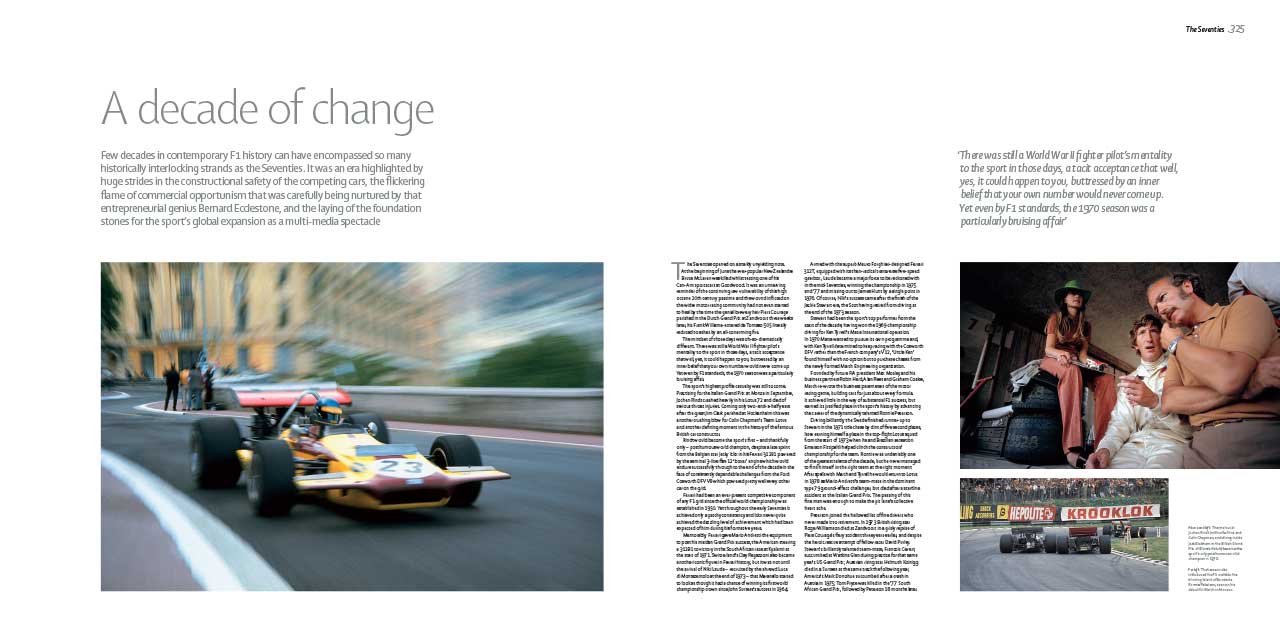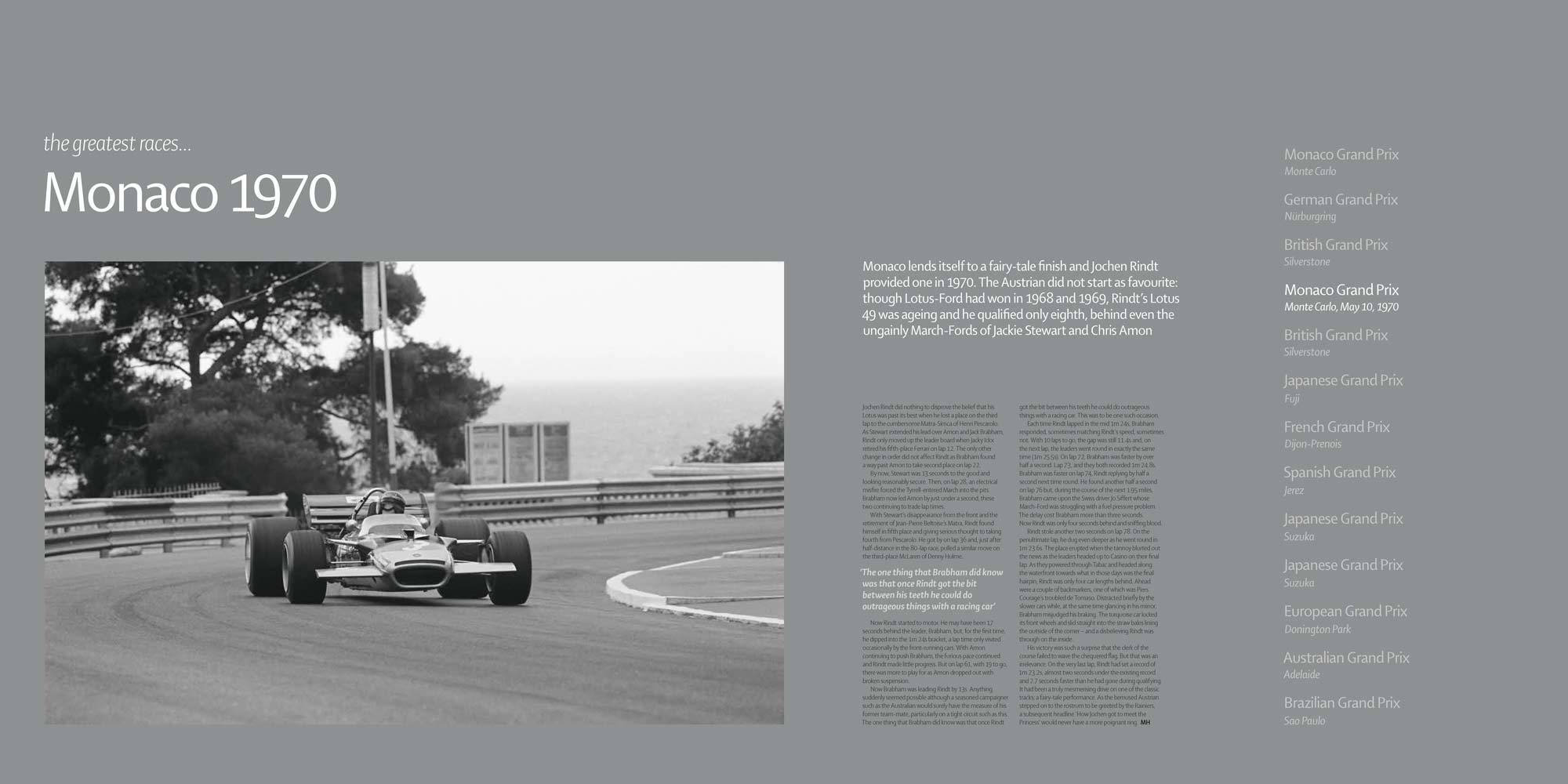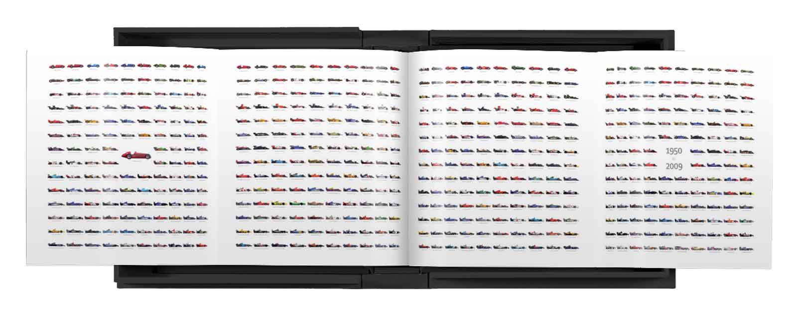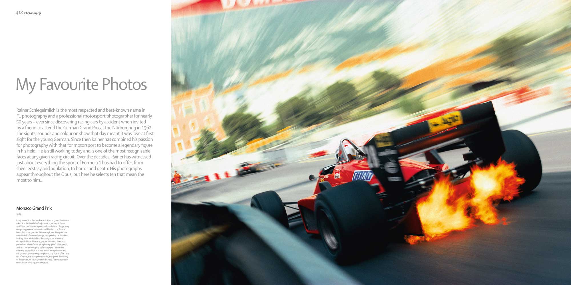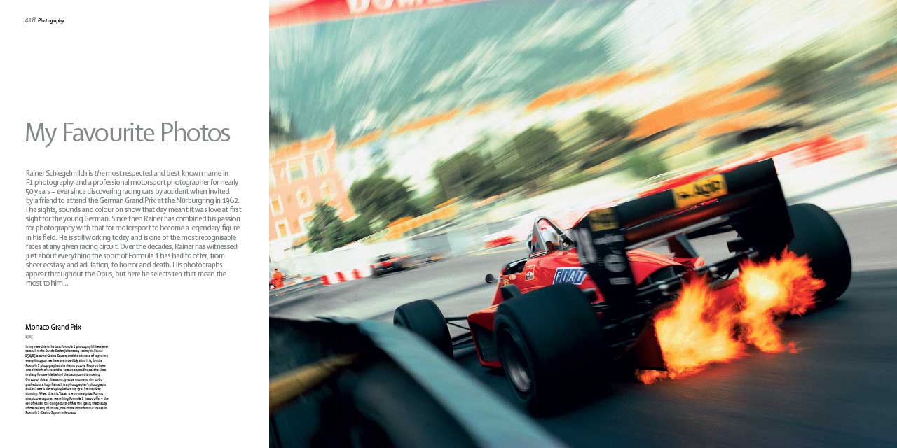 The Official Formula 1 Opus contains three giant fold-out gatefolds including a stunning pit-stop photo montage top F1 photographer Darren Heath, a celebration of the beauty and danger of Monaco and a wonderful illustration of every Formula 1 car down the years which beautifully displays the changing face of Formula 1.
