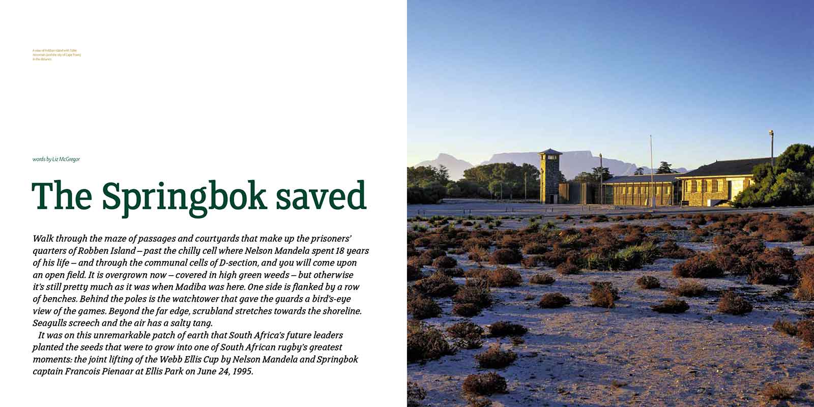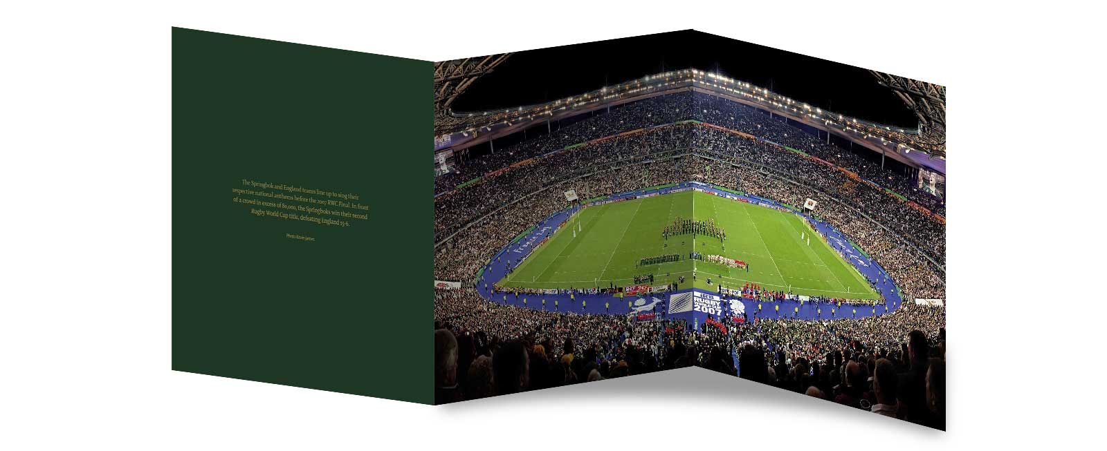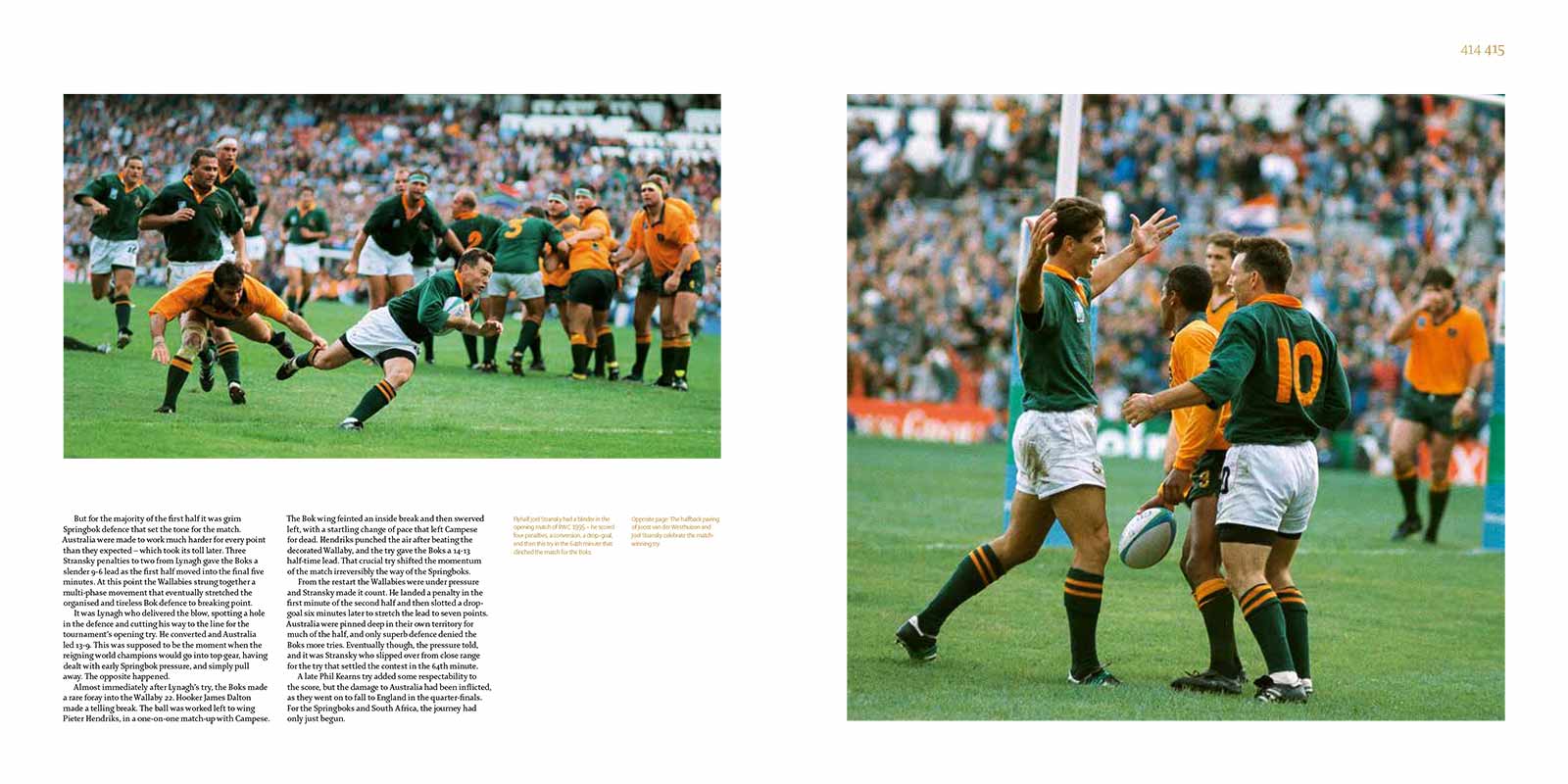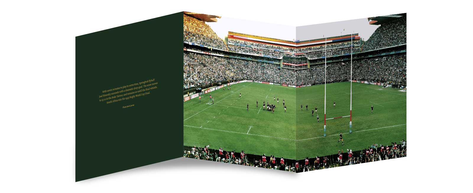 Three beautiful fold-out gatefolds including two celebrating the Springboks World Cup triumphs in 1995 and 2007.