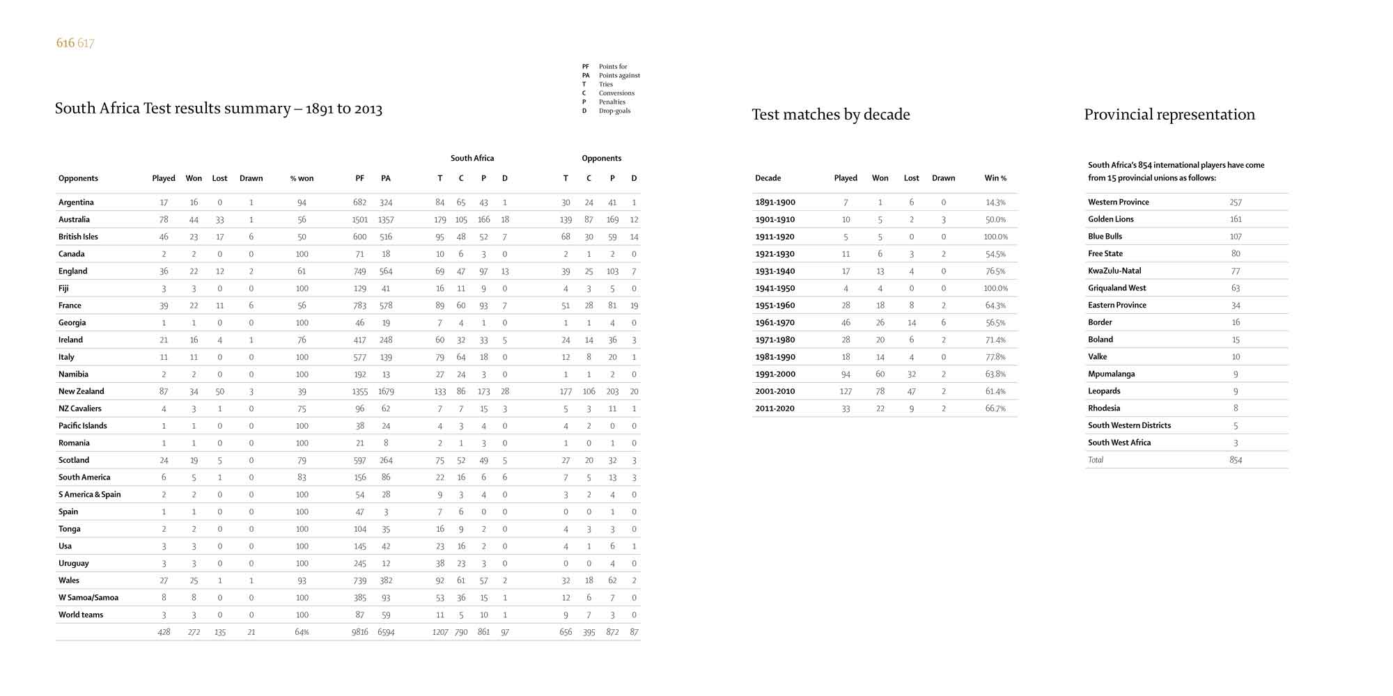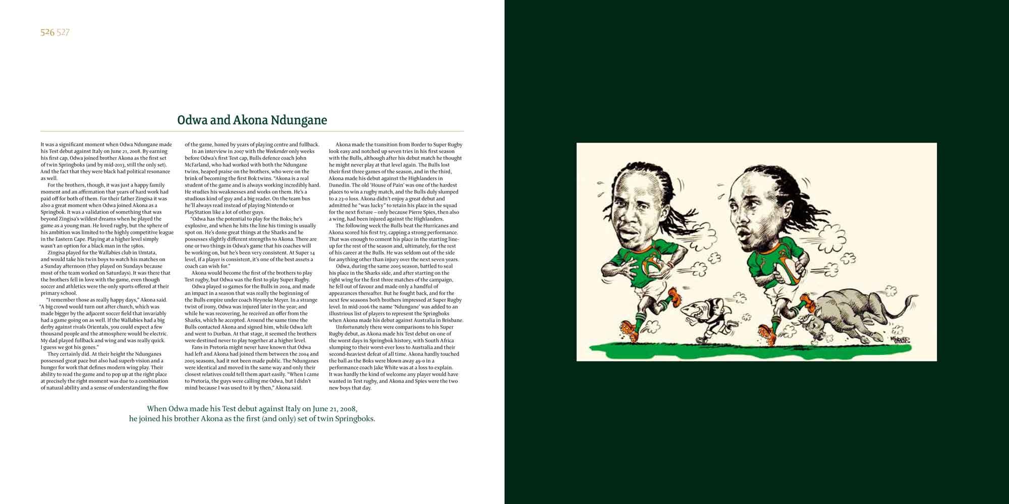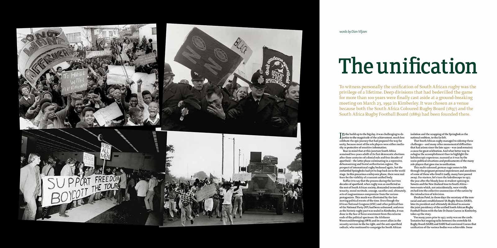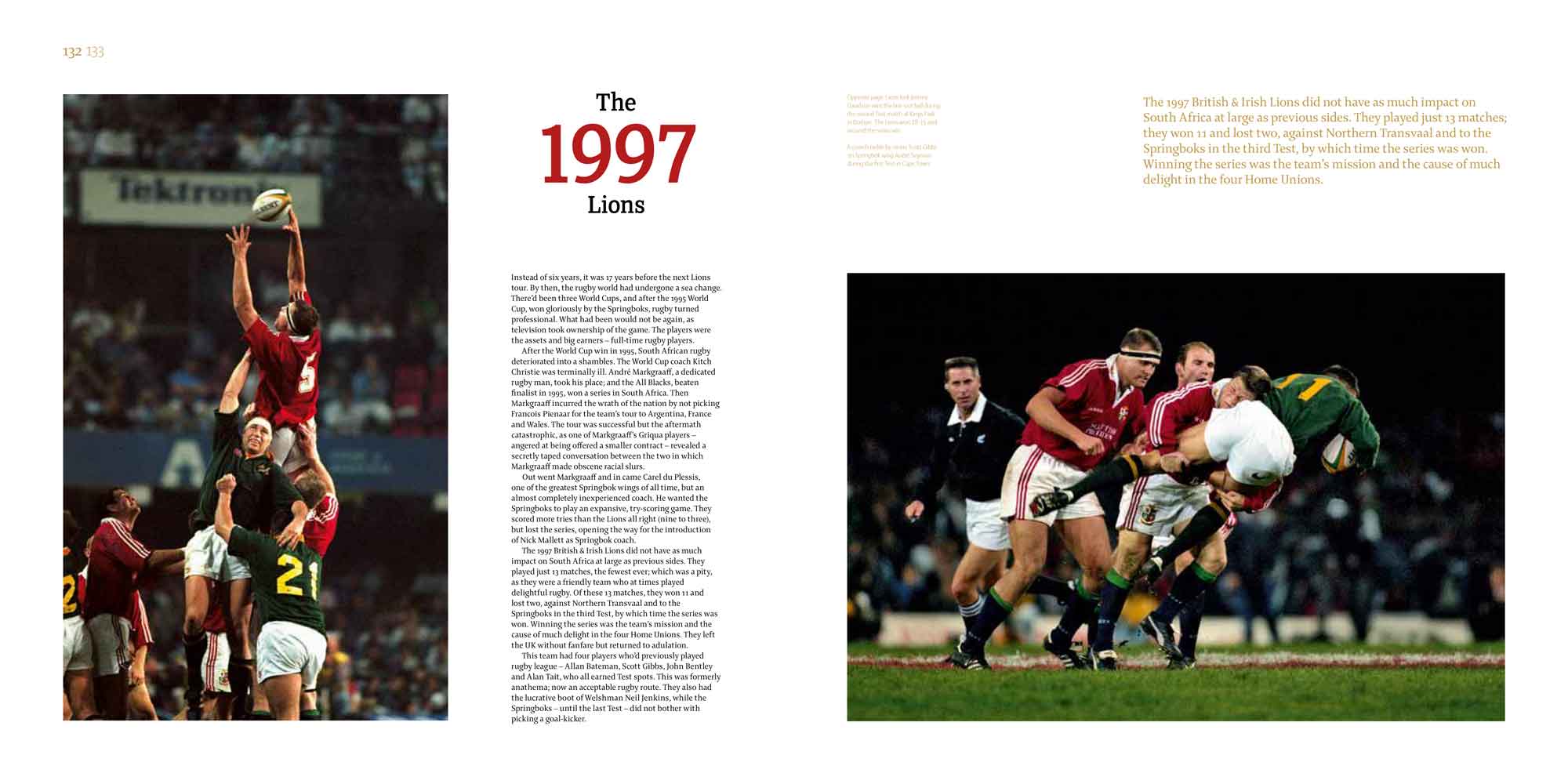 Three beautiful fold-out gatefolds including two celebrating the Springboks World Cup triumphs in 1995 and 2007.