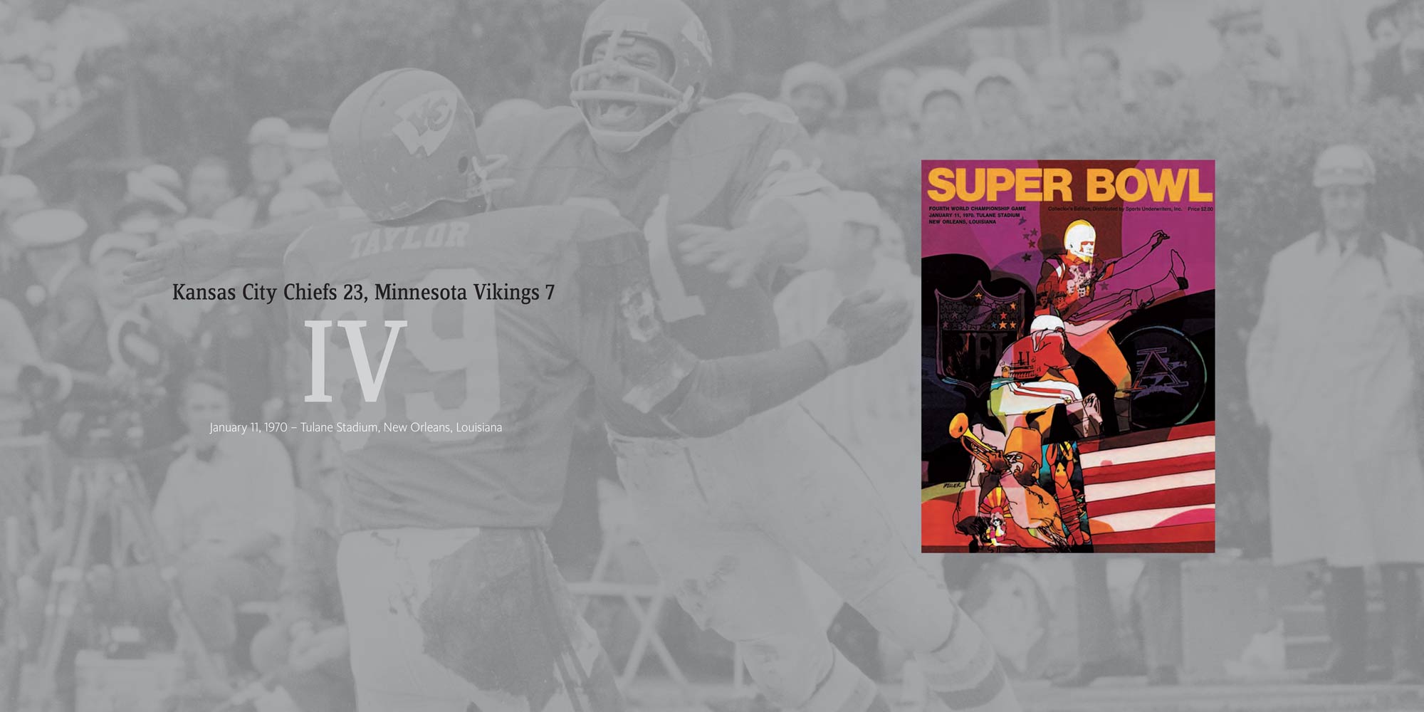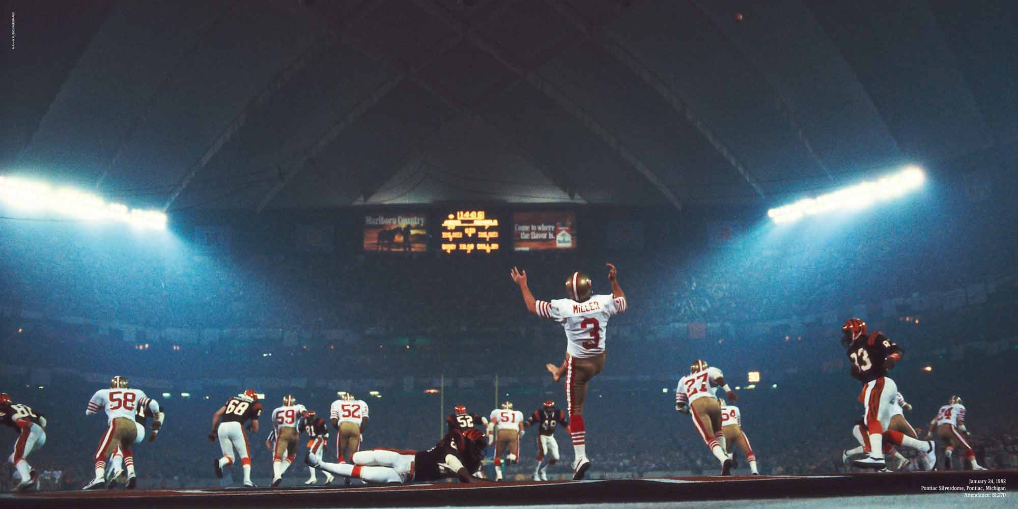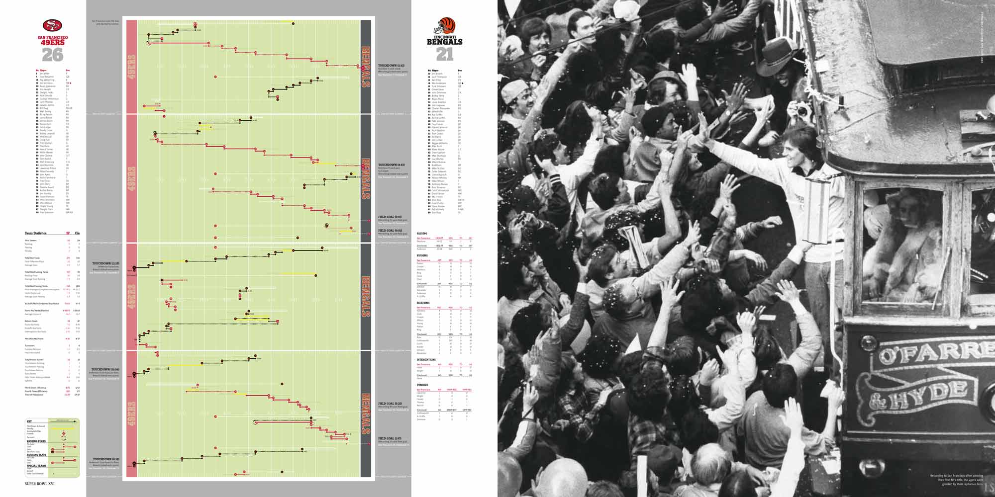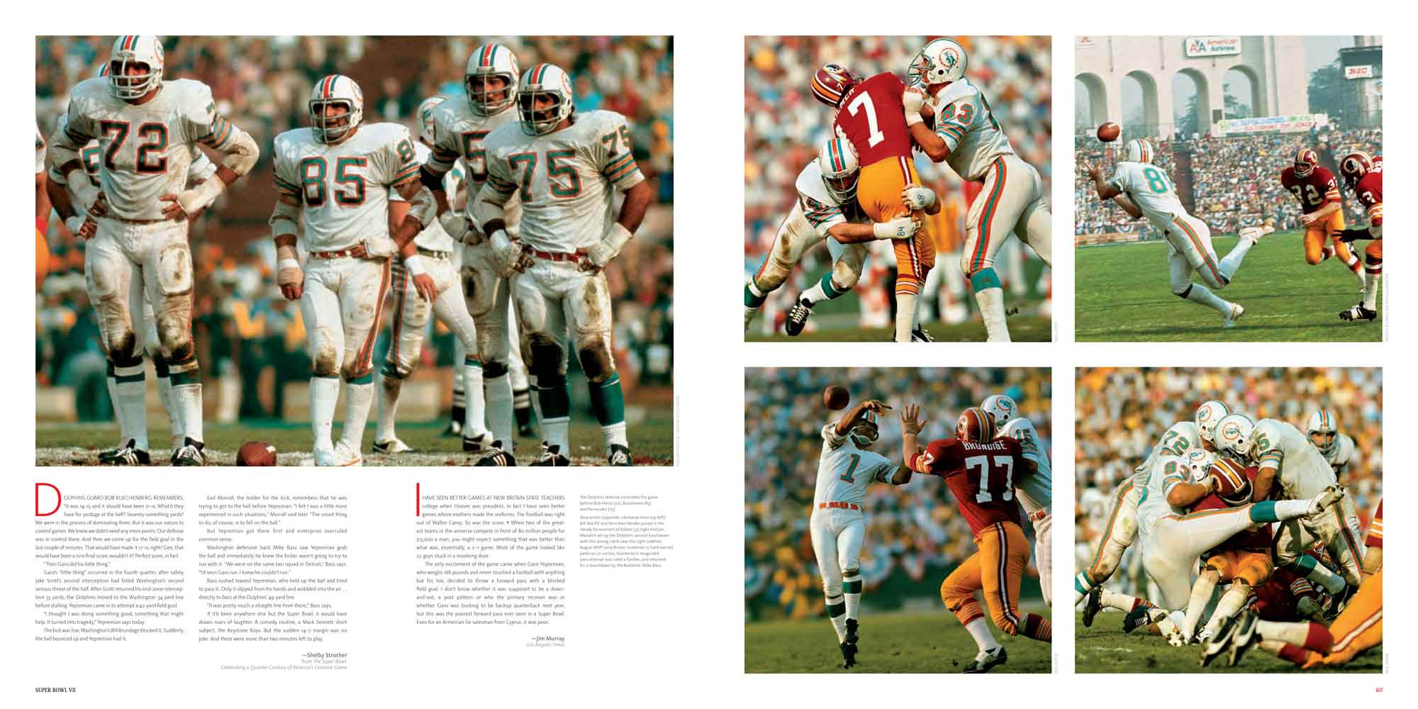 Chapters are dedicated to each Super Bowl, I to XL. These include a story of the season, a location shot of the stadium, the story of the game with stunning photography, a spread dedicated to the game’s MVP and a play-by-play game chart showing graphically every play of the game.
