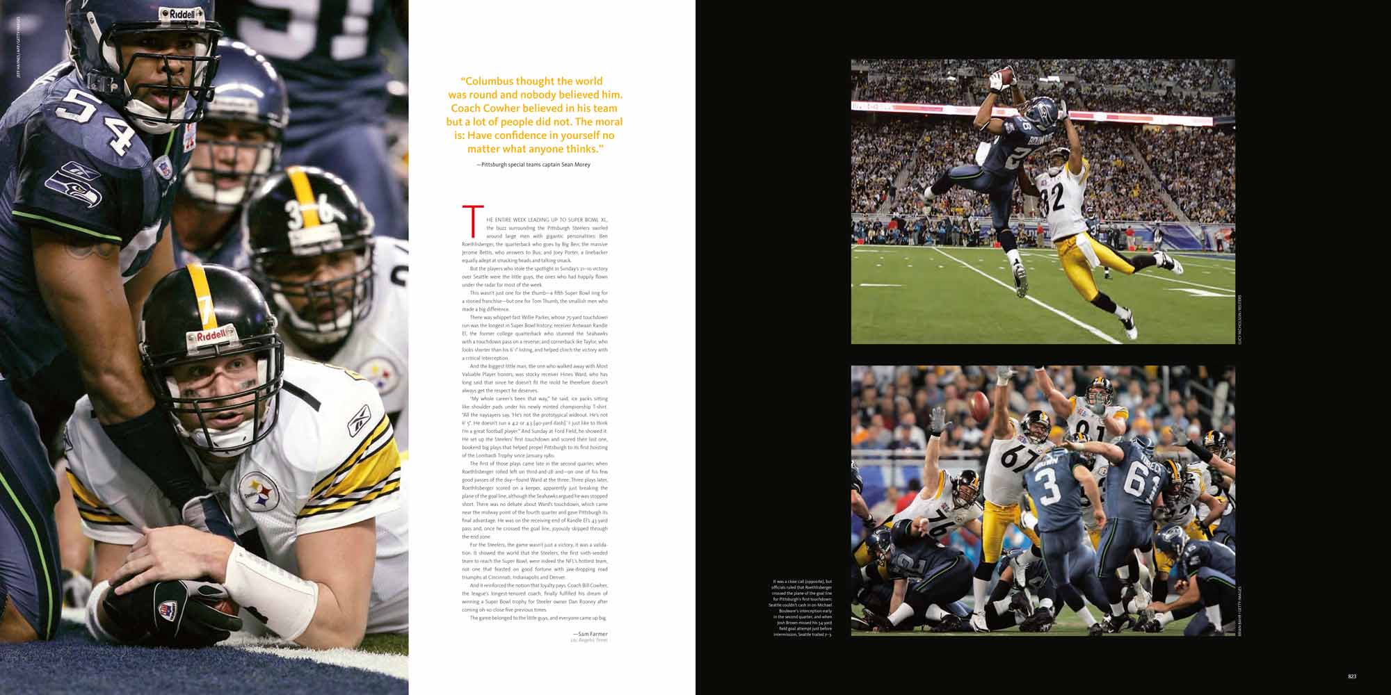 Featuring two ultra-wide fold-out gatefolds, including portraits of Super Bowl MVPs and Super Bowl XL.